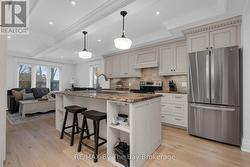 Welcome home to 206 Centennial Drive located in Midland. This home offers 2 spacious bedrooms and 2 bathrooms. Enjoy the beautiful open concept kitchen featuring stainless steel appliances, pantry, large island, plenty of cupboard space, coffered ceilings, and pot lights. Cozy living room with gas fireplace, built-in cabinetry, pot lights and coffered ceilings. Main floor and second floor have a bedroom with an ensuite. Owners have done many upgrades throughout the home including new roof (2024), new engineered hardwood floors in the foyer/dining area, kitchen and living room, installed leaf guard system (2024), new eavestroughs (2024), new main floor bedroom window (2024), new window in second floor bathroom (2025), stainless steel fridge (2025), new flooring in basement (2024), new fence including arbor and gate (2025), updated retaining/garden wall and patio area (2025) and glass shower door upgraded in main level ensuite (2025). Basement is partially finished. Backyard is perfect for entertaining with large landscaped lot with raised patio and deck. Close proximity to the Trans Canada Trail where you can walk along Midland's beautiful waterfront, close to schools, arena, restaurants and shopping. (id:27)
