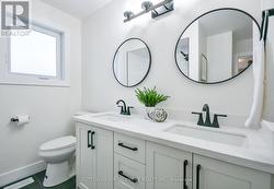 Welcome to this beautiful fully renovated detached home backing directly onto Mac Allen Park, offering privacy, green space, and a turn-key lifestyle in the heart of Midland. Completely updated in 2025, this home showcases quality craftsmanship throughout, including new electrical, flooring, lighting, doors, bathrooms, and a stunning modern kitchen. The open-concept main level is perfect for entertaining, featuring a stylish kitchen with island seating, seamless flow to the living and dining areas, and access to a large deck spanning the full width of the home. The primary bedroom offers a semi-ensuite bathroom, complemented by a second bedroom on the main floor. The finished basement expands your living space with a large recreation room with new fireplace, a beautifully renovated bathroom with heated floors, and a third bedroom with an oversized walk-in closet. A generous storage room provides excellent functionality, and offers potential for an in-law suite with cabinetry and stove plug installed. Major mechanical updates have also been completed for peace of mind: furnace (2023), A/C (2023), roof (2023), driveway (2022), and owned hot water tank (2023). Located close to schools and amenities, this exceptional home combines modern upgrades, flexible living space, and an unbeatable backyard setting and is a must-see property that truly has it all. (id:27)