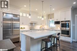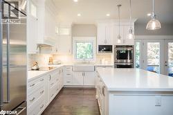 Nestled on one of Milton's most prestigious streets, 29 Barton is a custom-built gem offering over 2650 square feet of refined living space in the heart of Old Milton. Built in 2018 and surrounded by other grand homes, this residence blends timeless charm with modern luxury. The expansive custom white kitchen features a farmhouse sink, stone countertops, under mount and upper glass cabinet lighting and a massive island perfect for entertaining. Upgraded lighting, flooring, and custom cabinets/built-ins/vanities flow throughout the carpet-free home, which includes five spacious bedrooms plus a finished basement with an additional office or bedroom. The primary suite boasts a spa-like ensuite with a double vanity, soaker tub, heated floors and separate shower, while the kids bathroom also features a double vanity. Outside, enjoy gorgeous landscaping on a 66x132 ft lot, a detached 1-car garage, Hunter Wi-Fi irrigation system in front and back and parking for up to eight vehicles. With its prime location near downtown Milton, this home is the perfect blend of elegance, space, and convenience. (id:7525)