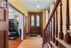 Escape to the country and embrace yourself in the character, charm & craftsmanship of this stunning 4 bedroom, 2 bathroom, 2 storey brick home nestled in a private, storey book setting. Find yourself enveloped in nature in this peaceful and private 1.77 acre property that provides endless space to unwind, for the kids and pets to play while being secluded from the rest of the world. The detached shop provides the perfect space for tinkering on toys, completing projects and storing the old car. Inside you are greeted with stunning brick feature walls, gorgeous hardwood flooring & grand rooms all flooded with natural light, coupled with tall ceilings and stunning original wood trim, baseboards, doors and fireplace features. Two living rooms and a formal dining room allow for ample space to host family and friends; all complimented by the bright and airy kitchen (& butler's pantry) for expansive meal prepping. A den/bedroom, enclosed porch, laundry and mud room complete the remainder of the main floor. Your expansive primary bedroom featuring walk-in closet, 3 pc bath with soaker tub, 3 additional bedrooms, a third living room space and third spa-like 3 pc bath are all accessible on the second level of the home from two grand staircases. Whether you enjoy relaxing on the front porch, playing a game of horse shoes, tinkering in the workshop or hosting grand family dinners and gatherings you will find the perfect space to enjoy and envelope yourself in this peaceful, story-book setting. Call Today To View What Could Be Your New Home at 9540 Ayton Road, Harriston. (id:27)