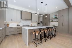 Just steps from the lake in the heart of vibrant Port Credit, this 4-yr-new custom white stone semi offers a rare blend of luxury, warmth & thoughtful design. From the moment you enter the grand foyer the home feels welcoming & intuitive with a custom bench & wall of built-ins that set the tone for the craftsmanship found throughout. The super-wide open concept main flr is both elegant & inviting, where the living, dining, & kitchen spaces flow effortlessly together around a beautifully framed fireplace & a wall of glass that walks out to the stone patio & sun-filled yard.The kitchen is a true showpiece, designed for both everyday living & entertaining, with quartz counters & backsplash, integrated appl., a 6-burner gas stove w/ built-in hood fan, & an impressive waterfall island at the centre. 10 ft ceilings, warm eng. hardwood floors, refined finishes & abundant natural light create an airy, upscale feel throughout. Every detail has been carefully considered, with custom built-ins & Hunter Douglas blinds that keep the space clean, organized & serene.Upstairs, 9 ft ceilings & three skylights brighten the space. The primary retreat features oversized windows, a custom WIC, & a spa-inspired 5-pc ensuite w/ floating vanity, quartz counters, deep soaker tub & glass shower. All 4 bdrms are generously sized w/ large windows, all have WIC & access to full baths, incl. a convenient Jack & Jill, making this an ideal layout for families.The finished basement offers a bright, open canvas, 9 ft ceilings w/ large windows, pot lights, vinyl flr, a full bath & an extra-wide walk-out to the backyard - perfect for rec. guests, or addt'l living space. Outside, the hardscape backyard w/ large awning is designed for entertaining, while the landscaped front yard w/ realistic turf ensures year-round curb appeal. A mudroom off the garage w/ tiled flr, quartz counters, custom storage & a long garage w/ extra space complete this exceptional home that balances luxury w/ everyday comfort. (id:27)