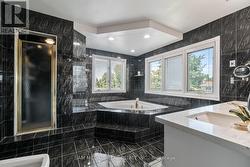 Welcome to 2339 Glengarry Rd. This beautiful home sits on a premium 180-ft lot with a generous setback, tucked behind metal gates, offering an approx. 7,500 sqft of interior living space. Upon entry, you'll find an open-concept layout featuring updated Pella windows, pot lights, and hardwood flooring throughout. Soaring ceilings elevate the living and dining areas, while a main-floor office provides a quiet space for work or study. The kitchen includes custom hardwood cabinets, appliances, and a cozy breakfast nook. Adjacent, a den overlooks the backyard and offers seamless outdoor access. The spacious family room with a gas fireplace serves as a welcoming space to relax and spend quality time with loved ones. Upstairs, you'll find four generously sized bedrooms, with a 5-piece semi-ensuite, a shared 3-piece bath, and ample closet space. The primary suite offers a private retreat with a 4-piece ensuite boasting a jacuzzi, standing shower, and walk-in closet. A versatile bonus room connected to one of the bedrooms can serve as an office or guest space. On the lower level, the fully finished basement expands the living experience, featuring a wood-burning fireplace in the large rec room, a private sauna, an exercise area, a second kitchen, an additional bedroom, and a 3-piece bathroom, perfect for extended family or entertaining. The outdoor space is equally impressive, with a spacious backyard and a composite deck installed in 2022 (backed by a 25-year warranty), providing the perfect space for outdoor activities or relaxation. Enjoy convenient parking with two garages featuring epoxy flooring, along with a private driveway that can accommodate up to 10 vehicles, providing plenty of space for family and guests. Nestled in a prime neighborhood near top-rated schools, parks, premier shopping, and major highways. Don't miss your chance to call this space home! Enjoy ample circular driveway parking, a newly updated fence (2023), and upgraded attic insulation (2024). (id:27)