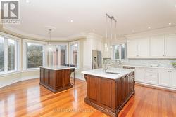 Immerse yourself in the highly desirable Erindale community, offering close proximity to Trillium Hospital, major shopping centres, trendy restaurants, and a convenient commute to downtown Toronto via the Queen Elizabeth Way and Highway 403. This spectacular home sits on an oversized, irregularly shaped lot and features over 6,000 square feet of total living space. The open concept interior showcases expansive living areas, soaring ceiling heights with pot lights and crown moulding, cherry hardwood floors, multiple fireplaces, and more. The bespoke chef's kitchen delivers a refined culinary experience, complete with a large centre island, granite countertops, built-in appliances, and an eat-in breakfast area. The breathtaking family room features open-to-above ceilings, built-in shelving, a gas fireplace, and expansive windows that flood the space with natural light. The main level primary bedroom is thoughtfully designed with a gas fireplace, an elegant 5-piece ensuite, a large walk-in closet, and direct access to a private office. The upper level offers three additional bedrooms with ensuite or semi-ensuite bathrooms, along with a dedicated study nook featuring built-in desks and cabinetry. An exceptional investment opportunity awaits with a self-contained basement apartment that includes a kitchen, two bedrooms, two bathrooms, a large recreation area, a movie theatre, and a gym. (id:27)