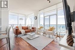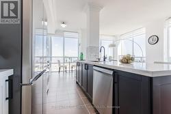 Absolutely stunning lower penthouse corner unit! 2 bedrooms + den + 2 full bathrooms. Comes with 2 parking spots and 1 locker!!! Amazing high ceilings with large floor to ceiling windows, flood the main living area with all-day natural light! Gorgeous kitchen, large island with breakfast overhang, herringbone backsplash, and stainless steel appliances. The convenient den opens up to the grand living / dining area. Step out to your balcony with updated flooring to take in the absolutely breathtaking lake views and downtown Toronto skyline! Perfect spot to sit and enjoy a cup of coffee on those warm summer mornings. The primary bedroom features a walk-in closet and a beautiful spa-like ensuite. The 2nd bedroom is a great size and conveniently located close to the 2nd bathroom. This building features loads of great amenities including 24hr concierge, playground, indoor pool, guest suites, games & media rooms, party room, sauna, and gym. Amazing location! Short 5 minute drive to Square One, Sheridan College, Public Transit, Walmart, Metro, Banks, Restaurants, and so much more! What's not to like?!? Please note pictures are old and the unit's current setup may differ slightly from what is shown. (id:27)