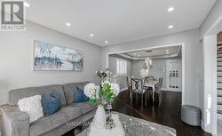 Nestled in the heart of Mississauga on a rare, premium pie-shaped lot, this stunning fully upgraded 4+2 bedroom, 4-bath detached home features a massive backyard, stamped concrete front patio, and a finished basement apartment with a separate side entrance perfect for rental income or multigenerational living. The main floor boasts an elegant open-concept layout with tray ceilings, pot lights, hardwood floors, and a cozy double-sided gas fireplace connecting the family and breakfast areas. A bespoke white kitchen showcases quartz countertops, built-in stainless steel appliances, a stylish backsplash, and an oversized island with an extended breakfast bar. Upstairs, the luxurious primary suite offers a spa-like ensuite with a soaker tub and a huge walk-in closet, while additional bedrooms provide ample space, natural light, and vaulted ceilings. With seamless indoor/outdoor flow to an interlocked, fully fenced yard ideal for entertaining, this move-in-ready home is a rare blend of comfort, style, and functionality perfect for modern family living. (id:27)