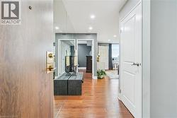 Set majestically high on the 26th floor of the Phoenix Condos, this rarely offered corner suite offers 1,280 sq. ft. of elegant living space with panoramic, unobstructed city and lake views. Featuring southeast facing exposure with a private balcony, this fully renovated residence combines style and functionality in a prime location just minutes from Square One, GO Transit, major highways, shopping, schools, and parks. Beautifully appointed interior upgrades include walnut-stained engineered hardwood floors, extra-deep baseboards, smooth ceilings and pot lights (2024). The modern kitchen is equipped with high-end Fisher & Paykel, Bosch, Sharp and Asko appliances, custom cabinetry, quartz counters, and a hidden stackable washer/dryer. The inviting open-concept layout separates two spacious bedrooms for maximum privacy, each offering walk-in or built-in California Closets. Two fully renovated bathrooms (2021) feature premium fixtures and spa-inspired finishes. Additional highlights include a full mirrored entry wall (2021), custom window coverings (2024), gallery-style hallway, two furnaces (with new fan coil insulation 2024), and two owned parking spaces. Residents enjoy resort-style amenities including a 24-hour concierge, indoor whirlpool, sauna, fitness centre, tennis court, squash court, party room, library, and landscaped outdoor spaces. (id:27)