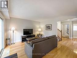 Spacious 4-Bedroom Semi in Highly Sought-After Meadowvale West Welcome to this rare 4-bedroom semi-detached home, ideally located on a quiet, family-friendly circle in Mississauga's desirable Copenhagen neighbourhood. Recently refreshed with new paint in the kitchen, eat-in area, dining room, living room, stairway, and main bathroom, this home offers a bright and welcoming feel. The main floor features a functional eat-in galley kitchen, convenient powder room, and open-concept living and dining areas with hardwood floors and a walk-out to the private backyard-perfect for entertaining or relaxing. Upstairs are four generous bedrooms with hardwood flooring, including a primary with double closets and a walk-through to the main bath. The finished lower level includes a cozy rec room, laundry, and workshop. Located minutes from Meadowvale Town Centre, top retailers, restaurants, parks, schools, and the newly opened Costco. Easy access to Highways 401, 407, and both Meadowvale and Lisgar GO Stations. Open House Saturday and Sundays 2 - 4. (id:27)