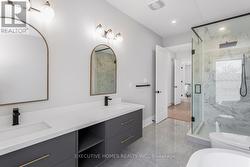 This newly built custom home by a Tarion registered builder in Lakeview features a bright foyer with open stairs and a glass railing, a main floor office, and a built-in closet. The spacious great room includes a gas fireplace with built-in shelving, while the stylish kitchen is equipped with stainless steel appliances, a beverage fridge, and elegant quartz counter tops,providing a perfect setting for entertaining. The primary suite offers a custom walk-in closet and a luxurious five-piece ensuite with a soaker tub. Upstairs are three additional bedrooms,one with a three-piece ensuite, a laundry room, and custom-built closets. The finished lowerlevel includes a living room, a fifth bedroom, a kitchen (without appliances), and a private walk-up entrance, ideal for extended family or a nanny. The home features 10-foot ceilings on the main floor and 9-foot ceilings on the upper and lower levels. (id:27)