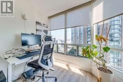 Experience Urban Elegance in the Heart of Mississauga Welcome to this impeccably maintained, turn-key residence offering 940 sq. ft. of versatile living space. This sun-drenched 1-Bedroom + Den (currently utilized as a 2nd bedroom) plus Solarium is the ultimate work-from-home sanctuary, wrapped in expansive windows and natural light. The interior features a contemporary kitchen complete with premium quartz countertops and a timeless subway tile backsplash, complemented by a fully updated modern bathroom. Functionality meets style with a dedicated walk-in laundry room and ample storage. Located steps from Cooksville GO and minutes from Square One and major highways (QEW/403), this home offers unparalleled connectivity. Includes one parking spot and one locker. This is a must-see property you won't want to miss! (id:27)