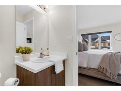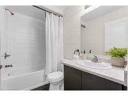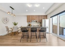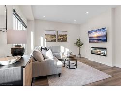 Better than new! Built in 2024, this stunning freehold townhome is nestled in the desirable Hampton Park community built by Dicenzo Homes. The inviting curb appeal welcomes you into a bright, spacious main floor finished in modern neutral tones, featuring 9' ceilings, gorgeous low-maintenance vinyl flooring, custom zebra blinds throughout, modern recessed lighting and a large kitchen with upgraded cabinetry, premium stainless steel appliances, and a generous island overlooking the separate dining area and cozy living room. Large windows flood the space with natural light, while an inviting Napoleon fireplace adds warmth on chilly winter nights. A convenient 2-piece bath completes the main level. The upper level offers three spacious bedrooms, including a generous primary retreat with a modern 3-piece ensuite and two walk-in closets, along with an additional 4-piece bathroom. Downstairs, the basement awaits your finishing touches - currently utilized as a large laundry area and storage space, and equipped with a 3-piece rough-in for a future bathroom. Perfect for pets or enjoying the warmer months, the backyard is partially fenced with new sod in both the front and rear, easily accessible through large patio doors. added bonus, oversized garage w/ interior access! Just steps from the sprawling Hampton Park community park and conveniently close to all major amenities, this home is sure to impress - and is truly move-in ready.