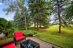Welcome to Green Briar A Beautiful Bungalow Retreat Backing Onto the Golf Course! Nestled in the highly desirable and low-maintenance community of Green Briar, this fully detached bungalow offers exceptional curb appeal, a premium wide lot, and backs directly onto the golf course creating a truly serene and picturesque setting. Whether you're enjoying your morning coffee on the walkout deck from the second bedroom or relaxing on the lower patio off the walkout basement, you will appreciate the peace and privacy provided by the lush mature trees and sweeping fairway views. Inside, this home is filled with natural light, featuring an inviting layout with high ceilings as you step through the front door and oversized windows throughout. The spacious living room boasts a cozy electric fireplace, perfect for cooler days, while the open-concept kitchen offers a charming breakfast area for casual dining. The primary bedroom showcases large windows that frame tranquil golf course views, creating a perfect place to unwind. Both bathrooms have been wonderfully renovated and include heated floors on the main level for a touch of luxury. Downstairs, the fully finished walkout basement presents an oversized family room with character-filled touches, including a stunning fireplace, numerous oversized windows, and walkout to the backyard patio overlooking the golf course. Enjoy the convenience of the direct access to the extra-wide garage from the laundry room with space for a full-sized vehicle and storage! Additional highlights include: New washer & dryer (2023), New furnace & A/C (2023), Water softener (2024), Murphy bed/desk (2020), Dishwasher (2024), Newer windows throughout, New vinyl flooring in laundry room and downstairs bathroom, Freshly painted throughout Low-maintenance lifestyle in a quiet, well-kept community. Don't miss this opportunity to live in comfort and style in one of the most desirable settings Green Briar has to offer!