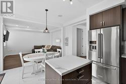 Well maintained 3-bedroom, 3+1-bath detached home offering a comfortable layout and excellent privacy. The main floor features a spacious dining area, a family room with a gas fireplace, and a modern kitchen with quartz countertops, tile backsplash, and stainless steel appliances. Upstairs, a bright family room with 13-ft ceilings opens to a private balcony, creating a versatile space for relaxing or working from home. The primary bedroom includes his-and-hers closets and a 5-piece ensuite, while two additional bedrooms share a 4-piece bathroom. The finished basement provides additional living space with a recreation room, electric fireplace, 4-piece bathroom, and laundry. Enjoy the private backyard with interlock patio, gazebo, gas BBQ hookup, and custom shed. No neighbours to one side or behind. Stylish, well cared-for, and move-in ready. (id:27)