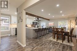 Welcome to 5674 Hillcrest Crescent, tucked away in the sought after north end of Niagara Falls on a mature tree lined street. This quiet, family friendly community sits at the end of a cul de sac, offering the peace and privacy that come with very little traffic - a true hidden gem in the city. Step inside this beautifully updated four level back split, featuring 3 bedrooms and 1.5 baths. The main level has been completely transformed into an open concept space, perfect for entertaining or everyday family life. The custom kitchen is the heart of the home, showcasing a massive island with loads of storage, quartz countertops, stainless steel appliances, pot lights, and a wall of additional cabinetry. Large windows fill the space with natural light, creating a bright, inviting atmosphere that flows seamlessly into the dining area. Upstairs, you'll find three generous bedrooms, including the primary with a double closet, along with a fully updated bathroom featuring a tiled shower and modern vanity. The lower level offers a comfortable family room with full size windows, a gas fireplace, and a convenient walk up to the backyard - an ideal setup for in law potential. A two piece bath adds extra functionality to this level. The basement is unfinished but dry and spacious, offering excellent storage, laundry, and future finishing possibilities thanks to its good ceiling height. Outside, enjoy the large backyard - plenty of room for kids, pets, or summer gatherings. This home is located just minutes from great schools, local parks, and convenient highway access for commuters. Niagara on the Lake wineries and Niagara Falls and everything it has to offer are only a short drive away, perfect for afternoon outings and enjoying the best of the region. 5674 Hillcrest Crescent is a move in ready home that blends modern updates with comfort and charm, a perfect fit for families looking for space, style, and a wonderful north end location. (id:27)