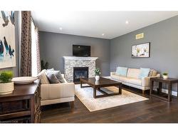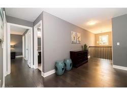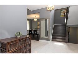 Welcome to this executive 4-bedroom, 4-bathroom detached 2-storey home, built in 2016 and located in the prestigious Fernwood Estates subdivision in Niagara Falls. Step inside to find rich, dark hardwood flooring throughout both the main and second floors, with no broadloom anywhere in the home. Nine-foot smooth ceilings and pot lights on the main level create a bright, upscale feel, while the impressive open-to-above foyer sets the tone for the rest of the home. The gourmet kitchen is a chef's dream, featuring granite countertops, a stylish backsplash, a breakfast bar, and stainless steel appliances. Porcelain tiles highlight the foyer and spacious laundry room, which also provides a walkout to the double-car garage. Upstairs, the large primary suite offers a luxurious 5-piece ensuite bath and a walk-in closet. Three additional well-sized bedrooms share a third 4-piece bathroom. The finished lower level, accessible via a separate walk-up through the garage, offers vinyl flooring, a large recreation/family room, a potential fifth bedroom, a full 3-piece bathroom, and a cold room for extra storage. The exterior is equally impressive, featuring a stone and stucco finish, an exposed aggregate driveway with parking for four vehicles, and a covered concrete patio ideal for outdoor entertaining. Built with style and functionality in mind, this 2016 home combines elegance, comfort, and premium finishes throughout.