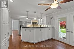 Gracefully situated in the prestigious community of Garrison Village, 36 Confederation Drive offers a rare opportunity to own a refined residence where timeless architectural charm meets modern sophistication. This exceptional 4-bedroom, 3-bathroom home welcomes you with beautifully proportioned, light-filled living spaces and an inviting sense of warmth throughout.The main level features elegant wide plank flooring, a stately living room with gas fireplace, a formal dining area ideal for entertaining, and a private den perfect for work or relaxation. The open-concept kitchen and family room overlook the manicured backyard and provide seamless access to a covered deck-an ideal setting for outdoor living.Upstairs, four spacious bedrooms offer comfort and versatility, highlighted by a serene primary suite with a cozy wood-burning fireplace, walk-in closet, private ensuite, and tranquil treetop views. A convenient upper-level laundry room adds to everyday ease. The lower level extends the living space with a walk-up to the backyard and a wine cellar, a subtle nod to Niagara-on-the-Lake's celebrated wine country lifestyle. Surrounded by mature landscaping, this home offers an exceptional blend of elegance, functionality, and serenity in one of the area's most sought-after neighbourhoods. (id:27)
