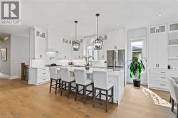 Discover low-maintenance luxury living in this beautifully designed bungalow, perfectly situated between Niagara-on-the-Lake's vineyards and the amenities of Niagara Falls. This home offers the ideal blend of style, function, and comfort for today's modern buyer. Step inside to soaring ceilings, elegant panel detailing. The chef-inspired kitchen features quartz countertops, custom built-in cabinetry, and a premium Thermador gas stove, perfect for entertaining. With 5 spacious bedrooms, a bonus room ideal for a home gym or office, and two full kitchens (including one in the finished basement), the layout is ideal for multi-generational living or hosting guests. Relax by one of two gas fireplaces or enjoy the outdoors on the covered patio. Notable Features: Engineered hardwood flooring throughout, Heated floors in all bathrooms, Motorized electric blinds, Second kitchen in basement, AC (2022), HVAC (2022), Roof (2022) In-ground sprinkler system, Double garage + driveway parking. Some photos have been virtually staged. (id:27)
