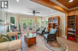 Location, location, location!! Just 1.5 blocks from Downtown!! The Bookseller’s Cottage is an historical NOTL icon, circa 1939. The location and value can’t be beat. Just a two-minute walk to downtown Queen Street takes you to cafes, restaurants, gelato bars and bakery shops, theatre, unique shops and everything NOTL has to offer. Despite the proximity to Downtown, this home is exceptionally quiet inside and no traffic can be heard inside. The main house, previously renovated, has also been substantially updated over the past 2 years with over $150k in improvements and repairs. [Please see photo #3 with the long list of features and upgrades]. Entering the home, you are greeted by a large open living room with a high-end, built-in elegant brick fireplace. This is one of two built-in, brick fireplaces in the house, each operated with remote controls. The living room also features two walls of near-floor-to-ceiling bookshelves. The primary bedroom is located discreetly off the living room through a sheer-curtained English-paned door, with a Jack-n-Jill ensuite. The bedroom is large and can be renovated back to 2 bedrooms if so desired. The kitchen has very substantial storage, newer appliances, a dining area open to a comfortable seating area also with its own brick, built-in fireplace, and welcomes you to the new four-season sunroom. The large double-door assembly and new windows provide an abundance of natural light with walk-out to rear garden. The sunroom also has a new 2-piece powder room behind a frosted pocket door. The back garden has a number of seating areas, flower gardens and locking, wood storage bins. The Garden Suite (second building) is the “pièce de résistance” – a separate new four-season dwelling complete with full shower, on- demand hot water, combined ductless heat-A/C unit, and living/sleeping area. A rare find and perfect for family, friends and guests. The home is priced to sell!!! Book your appointment today to see this one-of-a-kind gem. (id:27)