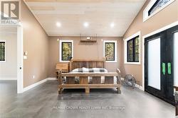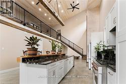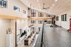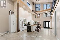 This architectural masterpiece is a rare find! Nestled on approximately 1 acre in a quiet and tranquil cul-de-sac in the sought-after Ski Hill Ridge of Powassan, this 4-bedroom, 3-bath home is a perfect blend of elegance and modern design. The soaring 30-foot ceilings create a sense of grandeur throughout the open-concept living and kitchen area. The main level features three spacious bedrooms, a full bathroom, and a large mudroom connecting the home to the expansive garage, which includes its own bathroom and office space. The office offers direct access to a large deck, hardwired for a hot tub, and seamlessly connected to the Primary bedroom an ideal space for relaxation. Upstairs, the mezzanine overlooks the main living area and is wired for a projector, making it a spectacular space for entertaining. The home is equipped with high-end finishes, 3-zone in-floor heating extending throughout the home and garage, ensuring comfort year-round. Though some finishing touches are still required, this home is already a showstopper. Set on a serene lot in a peaceful neighborhood, homes like this don't come around often don't miss your chance to own a true architectural gem. (id:27)