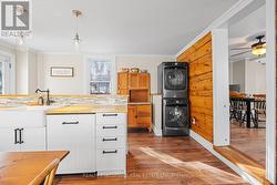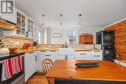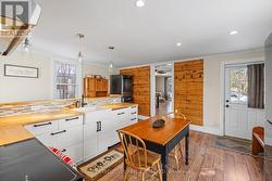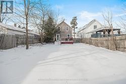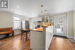 Located in the heart of Winchester, this charming single detached home beautifully blends old-world character with modern conveniences. Stylish laminate flooring flows throughout the main living, dining, and family rooms, as well as the kitchen and upper level, creating a warm and cohesive feel.The newly remodelled kitchen features classic shaker-style cabinetry, wood-stained countertops, a breakfast bar with seating for four, and a bright eating area filled with natural morning light from multiple windows. Upstairs, you'll find three comfortable bedrooms, a versatile den or home office, and a spacious, newly renovated 3-piece bathroom.The large, fully fenced backyard offers plenty of room for play and entertaining, complete with an expansive wood deck-perfect for summer gatherings. Air conditioning installed in 2025 adds year-round comfort. Ideally situated just steps from the school, library, hospital, shopping, and close to golfing, this home delivers both lifestyle and location. (id:27)