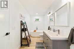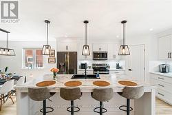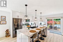 This modern bungalow built in 2021 is situated at a prime location in a well developed neighborhood. Your next address finds you at 16.5 North Court Street W in Norwich! The concrete pad driveway ushers you up the front porch with stamped concrete and welcomes you into the open concept main floor. The living room features a natural gas fireplace with stone surround, and a large front window overlooking the front yard and park. The custom kitchen features a large center island, black stainless steel appliances, and pantry for more storage. The open main living area includes a dining room perfect for hosting friends and family with room to add extra chairs and situated right next to the kitchen. The attached garage opens into the main floor laundry and convenient mudroom. There's a primary bedroom with access to the 5-pc bath featuring a double vanity, soaker tub, and walk-in shower. An additional bedroom completes the main floor. The finished basement features a unique bar area, as well as 2 guest bedrooms and a 3-pc bathroom. Outdoors you will find a real treat with a complete 8 foot fence around the backyard with 2 exit gates on either side of the yard! The large back deck includes a bar & TV area, BBQ area, and large pergola seating area. This is the ultimate space to entertain guests and host summer fun. The yard has low-maintenance landscaping, and exterior lighting as well. A large storage shed makes for the perfect space to store lawn equipment, and all your tools/toys. Don't wait to make this home yours! (id:27)