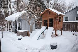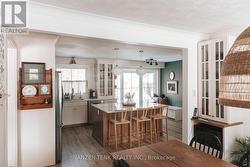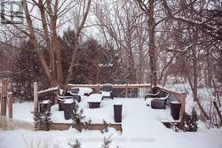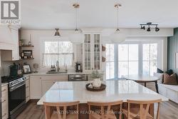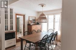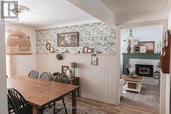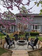This truly unique home blends thoughtful updates with warmth and character, all set on a private lot backing onto a conservation area. The main floor is anchored by a beautifully updated kitchen featuring quartz countertops, a large island, a built-in pantry, and generous cabinetry. A cozy breakfast nook with built-in seating creates a natural gathering spot, while a separate dining room with a large window offers space for more formal meals. The living room is bright and welcoming with cathedral ceilings, a welcoming fireplace with a wood-burning stove, and an abundance of natural light. Completing this level are a discreet main floor laundry with built in cabinetry, a 2-piece bath, and a convenient family entrance from the two-car garage. A flexible room off the front entrance adds even more versatility and could be used as a home office, additional bedroom, or creative space. Upstairs, the primary bedroom offers a private 3-piece ensuite, while two additional bedrooms are served by a recently updated family bath with a deep soaker tub. The finished basement extends the living space further with two bedrooms, one offering its own 3-piece ensuite, a large rec room, cold cellar, and an additional 2-piece bath. Over the past five years, this home has seen extensive updates including all new flooring throughout, a new kitchen, an updated family bathroom, and a new furnace and central air system. Outside, enjoy complete privacy with no rear neighbours. The beautifully landscaped yard is filled with perennial gardens and features a large deck with a gas BBQ hookup, a sunken above-ground pool, and a six-person hot tub, all easily accessed from the main outdoor living space. Terraced steps lead down to a built-in fire pit, while a heated 12x8 backyard studio with power adds flexible bonus space. The entire setting is ideal for relaxed summer evenings and quality time with family and friends. This is a home with space, personality, and a setting that is truly hard to find. (id:27)