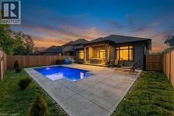 Welcome to this stunning custom-built bungalow, perfectly tucked away on a quiet dead-end cul-de-sac in the charming town of Norwich. Thoughtfully designed with both style and functionality in mind, this home offers a bright, modern atmosphere and is truly move-in ready. The open-concept main floor seamlessly connects the living, dining, and kitchen areas, creating an ideal space for everyday living and entertaining. The living room is highlighted by recessed pot lighting, adding warmth and architectural interest. At the heart of the home, the chef-inspired kitchen impresses with abundant counter and cupboard space, a stylish tile backsplash, stainless steel appliances, and a large extended island with additional seating. A walk-in pantry offers exceptional storage, and the dining area seamlessly extends to the backyard, creating an effortless indoor-outdoor living experience. The main-floor primary suite is a private retreat overlooking the backyard oasis. It features a spacious walk-in closet and a spa-like ensuite complete with dual sinks, a walk-in shower, and a standalone soaking tub. Two additional well-appointed bedrooms and a full four-piece bathroom complete the main level. Downstairs, the fully finished lower level expands your living space with a large recreation room with a modern electric fireplace and a stylish bar area, perfect for relaxing or hosting guests. This level also offers an additional bedroom, a fully equipped home gym, and a modern three-piece bathroom. Outside, unwind on the covered patio and enjoy your private backyard oasis, complete with an inground pool—an ideal setting for summer entertaining or peaceful evenings at home. Additional features such as a tankless water heater, keyless door entry, and a doorbell camera add comfort, efficiency, and peace of mind to this exceptional property. Refined living awaits in this beautiful property, where luxury, practicality, and an exceptional location come together seamlessly. (id:27)