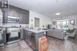 This beautiful main-floor suite features 2 bedrooms and 2 bathrooms, offering 908 sq ft of interior living space plus a spacious 350 sq ft terrace/patio. With 9 ft ceilings and a modern upgraded kitchen complete with granite countertops and stainless steel appliances, this home perfectly blends comfort with style. Being on the main floor, it offers the unique feeling of living in a house, while enjoying all the conveniences of condo living. Located in Rural Oakville, its just minutes from GO Transit, Lions Valley Park, major highways, shopping plazas, and schools. Discover luxurious living in the prestigious 5 North Condos, featuring the largest unit in the building full of high-end upgrades and built by Mattamy. This 2-bedroom, 2-bathroom residence is ideal for those who appreciate modern living with a touch of luxury. The unit boasts 9 ft ceilings. The upgraded kitchen is a showstopper with extended upper cabinets, sleek quartz countertops, and elegant bar lighting. Additional upgrades include modern doors, custom blinds, luxury bathroom tiles, and a marble quartz bathroom sink. Nestled in a vibrant neighborhood, the condo is within walking distance to Isaac Park, Oak Park, and River Oaks Community Centre perfect for walks, family outings, and recreation. Commuters will appreciate quick access to Highways 403 and 407, as well as proximity to Oakville GO Station, offering seamless connectivity to Toronto and beyond. Residents of 5 North Condos enjoy top-notch amenities, including a fully equipped gym, party room, and a rooftop terrace with BBQ. This is a rare opportunity to own the largest and most upgraded unit in 5North Condos, surrounded by the best of Oakvilles parks, schools, and shopping. (id:27)