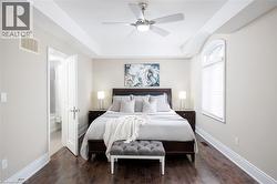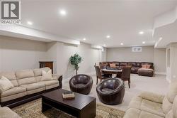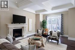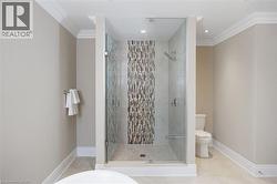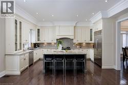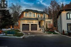 This prestigious southwest Oakville custom home offers luxury living on a large, private pie-shaped lot at the end of a quiet court off Lakeshore Road backing onto mature trees and the YMCA grounds. Ideally located between Oakville Harbour and Bronte Harbour, the property offers quick access to Lake Ontario waterfront parks and beaches, downtown Oakville, Bronte Village, and Appleby College, as well as convenient commuter access to the QEW and Bronte GO Station. The striking exterior features a stately stone façade, precast stone accents, a covered front entry, soffit lighting, and a stone-lined driveway leading to an attached double garage with inside entry. The deep, private backyard, with mature trees, features a newly installed stone patio and ample green space. Offering approximately 3,430 sq. ft. of finished living space, this 4+1 bedroom, 4.5-bathroom home impresses with 10-foot main-floor ceilings, smooth, coffered, and tray ceiling details, deep crown mouldings, custom cabinetry, upgraded lighting, medium-stained hardwood floors on two levels, and a solid oak staircase with iron pickets spanning three levels. Main-floor living includes a spacious living room, formal dining room, and an elegant family room with a coffered (waffle) ceiling and gas fireplace. The chef’s kitchen offers extensive custom cabinetry, stone counters and backsplash, under-cabinet lighting, an island with a breakfast bar, deluxe appliances, and a bright breakfast room with a walkout to the patio. All second-floor bedrooms feature ensuite bathroom access, including a luxurious primary suite with two walk-in closets and a spa-like 5-piece ensuite with a freestanding tub and glass shower. The professionally finished basement offers expansive open-concept living, including a recreation/games room, a fifth bedroom, and a 3-piece bathroom. $250/month road fee (id:7525)