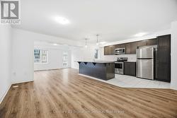 Newly built in North Oakville, this stylish freehold townhome offers 3 bedrooms and 3 bathrooms with beautifully upgraded living space perfect for young families, couples, and first-time buyers seeking modern comfort in a prime location. The home features floating engineered hardwood floors throughout (upper level 2026) and an open-concept layout with an eat-in kitchen complete with stainless steel appliances, granite countertops, a newly installed backsplash, and a center breakfast bar ideal for entertaining. Step out to a spacious balcony for effortless outdoor enjoyment. The entire home was freshly painted (2026). Upstairs, the private primary suite includes a walk-in closet and 4pc ensuite, complemented by two additional bedrooms and a full bathroom. Convenient garage access from the main level adds everyday practicality. Located steps from the Sixteen Mile Creek Trail and minutes to Bronte Creek Provincial Park, Glen Abbey Golf Club, Oakville Place, and the GO Station. This is modern Oakville living at its best just move in and enjoy. (id:27)