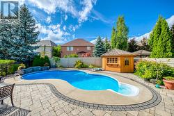 5 Elite Picks! Here Are 5 Reasons To Make This Home Your Own: 1. Stunning Gourmet Kitchen Boasting Maple Cabinetry, Stainless Steel Appliances, Centre Island with Breakfast Bar, Granite Countertops & Bright Breakfast Area with W/O to Patio, Pool & Private Backyard! 2. Spacious Principal Rooms... Gorgeous Family Room Featuring Bow Window Overlooking the Backyard Oasis, Plus Sunken Living Room with Spectacular Custom Gas Fireplace, Separate Formal Dining Room (with Bow Window & Coffered Ceiling) & Private Office/Den with French Door Entry. 3. Generous 2nd Level with 5 Large Bedrooms & 3 Full Baths, with 3rd Bedroom Featuring a Private 4pc Ensuite! 4. Double Door Entry to Oversized Primary Bedroom Suite Boasting His & Hers W/I Closets & Luxurious 5pc Ensuite Boasting Double Vanity, Soaker Tub & Large Glass-Enclosed Shower. 5. Spectacular Backyard Oasis Boasting In-Ground Salt Water Pool with 3 Waterfall Features, Plus Patio Area & Cabana!! All This & More!! Gracious Double Door Entry Leads to Open 2-Storey Entry with Hardwood Staircase with Wrought Iron Railings. Modern 2pc Powder Room & Finished Laundry Room (with Ample Storage & Access to Garage) Complete the Main Level. Convenient W/I Linen Closet on 2nd Level. Unspoiled Basement with Additional 1,788 Sq.Ft. of Space Awaits Your Design Ideas & Finishing Touches! Fabulous Curb Appeal with Lovely Gardens & Stone Walkway/Steps. Convenient California Shutters in F/R, Kitchen, Office, Laundry and All Bedrooms & Baths! Fabulous Location in Desirable Joshua Creek Community Just Minutes from Many Parks & Trails, Top-Rated Schools, Rec Centre, Restaurants, Shopping & Amenities, Plus Easy Hwy Access. (id:27)