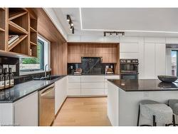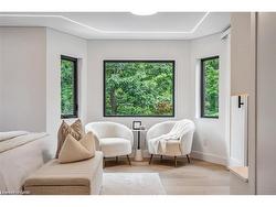 Experience the pinnacle of refined living in this distinguished residence, perfectly situated on one of Joshua Creeks most coveted wooded lots. Offering rare privacy and tranquility, this exceptional home is ideal for families who value both elegance and comfort. This exquisite elegant contemporary sanctuary features five expansive bedrooms, a main-floor office/bedroom, and six impeccably designed bathrooms, blending sophistication with modern ease. A grand cathedral ceiling elevates the living space, while the thoughtfully curated interior showcases meticulous craftsmanship, timeless finishes, and a serene, minimalist aesthetic. The exterior is equally striking, with an elegant interlocking stone walkway, a charming pergola, and professionally landscaped grounds that create a warm and inviting welcome. The backyard oasis, seamlessly connected to a scenic walking trail, provides a perfect retreat for relaxation or entertaining. Every detail has been carefully considered to enhance both function and luxury, including ample storage, a versatile main-floor office/playroom, and move-in readiness. Located on a peaceful street yet just minutesfrom upscale shops, fine dining, and major highways including the 403 and QEW, this residence offers the perfect balance of convenience and exclusivity. Sophisticated, serene, and meticulously maintained, this Joshua Creek masterpiece invites you to experience the ultimate in modern luxury living