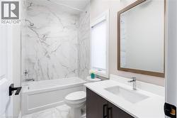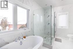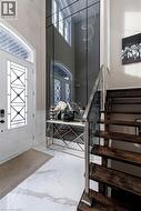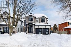 Welcome to this upscale Southwest Oakville home offering an exceptional lakeside lifestyle, steps from nature & a short drive to conveniences & highways. This sought-after neighbourhood, just 2 blocks from Lake Ontario, close to waterside parks & beaches, is perfect for outdoor enthusiasts. Extensive professionally landscaped grounds, including the private, resort-style backyard, featuring a 14’ x 28’ heated pool with a sheer descent waterfall, LED colour-changing lighting, copper filtration, a spacious concrete patio, & composite wood seating platforms, elevate summer get-togethers. Cameras monitor the building exterior, & Smart technology allows you to control the pool functions & thermostat via an app on your phone. Inside, enjoy approximately 3,200 sq. ft. of luxury living space with 4+1 bedrooms & 5.5 bathrooms, plus the professionally finished basement, & approximately $400,000 in recent upgrades. Premium finishes include 9 & 10-foot ceilings, upgraded hardwood floors, deluxe laminate in the lower level, oversized designer tile in all bathrooms, pot lights, chic light fixtures, wainscotting, a dramatic 2-storey mirrored foyer feature wall, & the floating oak staircase with glass railings is beyond impressive. The main level offers a formal living & dining area, a family room with a coffered ceiling & gas fireplace, a private office, powder room, & laundry with garage access. The chef’s eat-in kitchen features quartz countertops, deluxe white cabinetry, a butler’s pantry, a centre island, premium appliances, & walkout to the dream backyard. Upstairs, you’ll find 4 spacious bedrooms, each with walk-in closets & dedicated ensuite bathrooms, including the primary suite with a tray ceiling, an electric fireplace & spa-like five-piece ensuite. The finished lower level includes a large rec room with an electric fireplace & wet bar, a fifth bedroom, & a stylish 3-piece bath—ideal for entertaining, extended family, or guests. (id:7525)