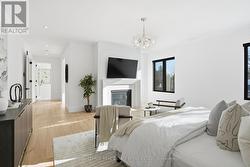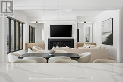 Experience unparalleled luxury in the prestigious heart of Bronte West. Custom built in 2024, this exceptional residence blends modern sophistication with timeless craftsmanship, offering over 6,100 sq. ft. of impeccably finished living space, highlighted by five fireplaces, on a coveted 75' x 150' lot. The striking limestone stucco exterior, clean architectural lines, and expansive windows create impressive curb appeal while filling the home with natural light. Inside, the main level showcases soaring ceilings, custom cabinetry throughout, and warm, inviting living spaces designed for both comfort and entertaining. At the heart of the home is a world-class chef's kitchen, featuring premium Thermador appliances and an oversized center island. The upper level is designed for comfort and privacy, offering four generously sized bedrooms, each with its own ensuite and heated floors. In total, the home features seven beautifully appointed bathrooms. The fully finished lower level adds exceptional versatility with a private nanny or guest suite complete with its own ensuite, along with a spacious recreation room, wet bar, and a fully equipped gym. A seamless indoor-outdoor transition leads to a covered terrace with a fireplace, overlooking an oversized backyard - an ideal setting to create your dream outdoor oasis. Complete with a 2.5-car garage, this extraordinary home delivers luxury living within walking distance to the lake, in one of Oakville's most sought-after neighborhoods. (id:27)