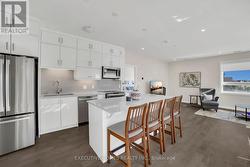 Discover elevated living in this beautifully upgraded 2-bedroom + den, 2-bathroom corner unit condo, ideally located in the heart of Oakville's most prestigious and family-friendly neighbourhood. Surrounded by multi-million-dollar homes, this spacious unit is one of the largest in the building and showcases vibrant architectural exteriors and a sun-filled open-concept layout. The modern kitchen features premium stainless steel appliances, quartz countertops, potlights, floor-to-ceiling cabinetry, and a stylish island with breakfast bar-perfect for both daily living and entertaining. Bathrooms are thoughtfully designed with comfort-height vanities, elegant tile work, and glass-enclosed super showers. Additional highlights include custom window coverings, in-suite laundry with stacked washer and dryer, and secure digital keyless entry. Powered by geothermal energy, this eco-conscious home offers year-round comfort and efficiency. Residents enjoy access to top-tier amenities including a security concierge, rooftop terrace, herbal garden, social lounge, fitness studio, outdoor yoga lawn, EV parking, and automated parcel delivery. With parks, schools, shops, and transit just steps away, this condo offers a rare blend of luxury, functionality, and unbeatable location-ideal for first-time buyers or savvy investors. (id:27)
