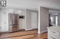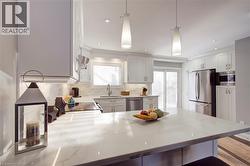 Sought after River Oaks- Open Concept Semi Detached Home backs onto Crosstown Trail just steps to Munn’s Creek on a quiet Cul-de-Sac-Updated Main Level offers Oak Floors, pot lights, Neutral Decor, Upgraded European White Kitchen with Quartz Counters, Breakfast Bar, Pendant & Undermount Lighting, Stainless Steel Appliances, Backsplash & Sliders to the Fenced Backyard- 2 Piece Powder Room- Spacious Bedrooms, Updated 4 piece Bathroom- Finished Rec Room, Workshop with Potential to be a 4th Bedroom- bonus Coldroom/ cantina- Oversized Driveway fits 4 Cars- River Oaks offers the luxury of being walking distance to all amenities, shopping, parks, Sixteen Mile Sports Complex, River Oaks Community Centre, nature trails & Top Rated Schools. Embrace urban living while enjoying peaceful walking trails and Munn’s Creek in your backyard! (id:27)