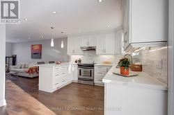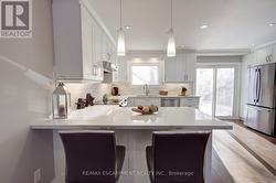 Sought after River Oaks- Open Concept Semi Detached Home backs onto Crosstown Trail just steps to Munn's Creek on a quiet Cul-de-Sac-Updated Main Level offers Oak Floors, pot lights, Neutral Decor, Upgraded European White Kitchen with Quartz Counters, Breakfast Bar, Pendant & Undermount Lighting, Stainless Steel Appliances, Backsplash & Sliders to the Fenced Backyard- 2 Piece Powder Room- Spacious Bedrooms, Updated 4 piece Bathroom- Finished Rec Room, Workshop with Potential to be a 4th Bedroom- bonus Coldroom/ cantina- Oversized Driveway fits 4 Cars- River Oaks offers the luxury of being walking distance to all amenities, shopping, parks, Sixteen Mile Sports Complex, River Oaks Community Centre, nature trails & Top Rated Schools. Embrace urban living while enjoying peaceful walking trails and Munn's Creek in your backyard! (id:27)