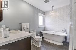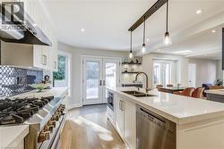 Welcome to your dream home on a lush ravine lot- A breathtaking Georgian-style residence nestled on one of the area's most sought-after crescents. Meticulously renovated with attention to every detail, this stunning property spans four spacious levels and offers 5 generous bedrooms, 4 bathrooms, a gourmet kitchen, formal dining room, living room or home office, family room, studio loft and a bright recreation room with electric fireplace in the lower level. Set against a serene natural backdrop, the backyard is a private oasis featuring a stone patio, upper deck, pool safety fence and an inground saltwater pool with waterfalls. Renovated in 2023, the main floor boasts hardwood throughout, custom-matched wood stairs, a gourmet kitchen with stainless steel appliances, a massive island, and a striking wet bar. An open breakfast area connects seamlessly to the family room, while the formal dining room is ideal for hosting gatherings. French doors, a gas fireplace, and garden views make the living room a beautiful option for a home office. Even the laundry room has been upgraded to make daily chores more enjoyable. Upstairs, the primary bedroom is a standout retreat, complete with hardwood floors, sitting area, his and hers closets and walkout to a private deck overlooking the ravine- perfect for morning coffee. The spa-like ensuite features double sinks, a freestanding tub, and a glass shower. The upper levels, freshly painted includes new broadloom and custom wood staircase. The third floor loft offers a fifth bedroom, full 4pc bathroom, and a flexible space ideal for a home office, studio, or teen retreat. This executive home blends charm, luxury, and functionality in a prime location. Full main floor renovation and configuration 2023. New windows & doors 2022, wood stairs with iron pickets 2023, painting & all broadloom 2025, A/C 2022, Renovated Primary bedroom & 5 pc ensuite 2016, roof 2010. Walking distance to schools, parks, trails and so much more. (id:7525)