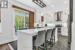 Live the lifestyle you've been dreaming of in this beautifully appointed home on a premium ravine lot in Oakville's sought-after Lakeshore Woods community. Backing onto tranquil green space, this rare find offers the perfect balance of privacy and convenience-just minutes from the lake, Bronte Harbour, and scenic wooded trails. The main floor showcases an open-concept layout with hardwood floors and sun-filled windows framing serene ravine views. At its heart is a fully renovated chef's kitchen featuring quartz countertops, stainless steel appliances, a stylish backsplash, and an oversized island with seating for six-an ideal space for everyday living and effortless entertaining. The kitchen flows seamlessly into the family room, where a cozy gas fireplace and forest views create an inviting retreat. Step outside to your private backyard oasis-a resort-inspired space with a saltwater pool, lush landscaping, and multiple areas to dine, lounge, and entertain, all surrounded by nature's beauty. Upstairs, you'll find four spacious bedrooms, including a luxurious primary suite with dual closets and a spa-like ensuite complete with an oversized glass shower, corner soaker tub, and heated towel bar. A second bathroom with double sinks and a glass shower serves the additional bedrooms. The finished lower level expands your living space with a home theatre, a dedicated office with walk-in closet, and a fifth bedroom-perfect for guests, teens, or extended family. Set within a welcoming community known for its natural beauty, family-friendly amenities, and vibrant spirit, this exceptional home offers the perfect combination of comfort, luxury, and lifestyle. (id:27)