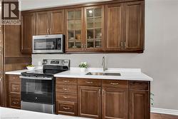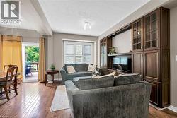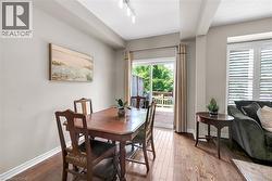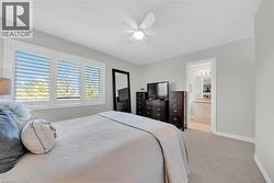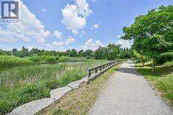 This beautifully maintained home offers an open-concept main level with hardwood floors, a modern kitchen with quartz countertops, a spacious living/dining area with custom-built entertainment unit . Sliding glass doors lead to a private deck and ground level patio overlooking green space. Upstairs, three generous bedrooms, complete with ceiling fans, and a primary suite with a walk-in closet, a double closet, and 4 piece ensuite. There is also a double linen closet for extra storage. The finished basement adds a versatile bonus room for a home gym/ teen suite/guest suite with private full bathroom. California shutters throughout add style, and the inside entrance from the garage adds convenience. The location in Wedgewood Creek provides trails, parks, a Community Centre, and top rated primary and high schools. Quick access to the QEW, 403, and GO station ensure easy commuting. This turnkey home is a rare gem in a vibrant, yet private, community. Make it yours! (id:7525)
