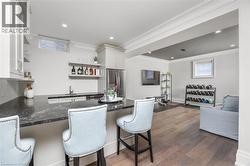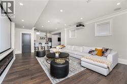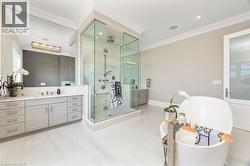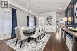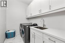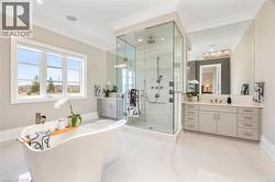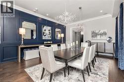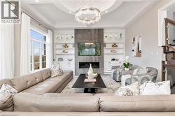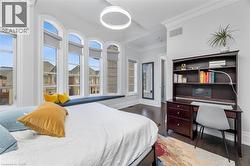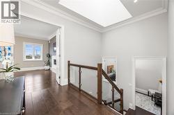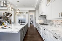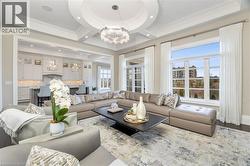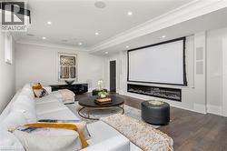 Welcome to this exquisite Fernbrook-built Rockefeller Elevation B model in Oakville's prestigious Glenorchy community. Offering over 3,800 sq. ft. of upgraded above-grade living space on a premium ravine lot, this home delivers true turnkey luxury.The main floor, professionally finished by Parkyn Design, boasts 11-ft smooth ceilings, porcelain tile, 11 baseboards, crown moulding, custom wainscoting, and designer accent walls. A chefs custom kitchen with double-stacked cabinetry opens to a panoramic breakfast/sunroom with breathtaking ravine views. The elegant family room features a built-in gas fireplace and custom shelving.A stunning floating glass staircase with skylight leads to a private office located between the main and second floors. The spa-like primary suite includes a walk-in closet, fireplace, and a luxurious ensuite. The second bedroom offers its own ensuite, east-facing windows, and a cozy bench. The third and fourth bedrooms share a beautifully appointed Jack & Jill bathroom. A convenient second-floor laundry adds to the functionality.The finished basement adds even more living space and features a home theatre with projection screen, a second kitchen, playroom, fifth bedroom, and a luxury bath complete with heated floors, steam shower, and sauna. Three oversized storage rooms provide ample space.Hundreds of thousands of dollars have been spent on upgrades throughout this meticulously maintained home. Located just steps to top-rated schools, scenic parks, trails, and the vibrant Uptown Core. (id:27)
