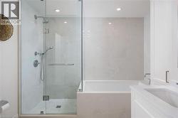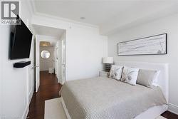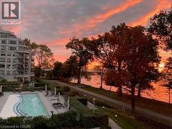 Paradise awaits at Bluwater Condos on Lake Ontario, offering true resort-style waterfront living with exceptional building amenities & unbeatable convenience. Ideally located just minutes from major highways, shopping, dining, & everyday essentials, this coveted community is steps to scenic parks & waterfront trails, with Bronte Harbour & Bronte Village-home to trendy boutiques, cafés, & restaurants-only a 4-minute drive away. This luxury renovated 2-bedroom, 2.5-bathroom condo spans approximately 1,550 sq. ft. & enjoys a premium position in the building, delivering breathtaking lake views, centre courtyard lounge, & plunge pool vistas from every window. Two private balconies provide a front-row seat to spectacular Lake Ontario sunsets. Refined craftsmanship & timeless style throughout, including engineered hardwood floors, crown mouldings, deep baseboards, 9' ceilings, wainscotting, & custom window coverings. Extensive 2025 renovations include the renovated kitchen, ensuite bathrooms, & laundry room, new high-end appliances, designer lighting, & a freshly painted interior, including ceilings, doors, & trim. The spacious formal living room & dining room offer floor-to-ceiling windows, remote-controlled blinds, & a walkout to the balcony-perfect for entertaining or quiet moments of serenity. The chef-inspired kitchen impresses with new custom cabinetry, quartz countertops, Miele appliances, & new flooring. The adjoining family room offers wall-to-wall custom cabinetry & expansive lake views. The primary retreat features its own lake-facing balcony & a luxuriously renovated 5-piece ensuite with a soaker tub & glass shower. Completing this exceptional offering is a second bedroom featuring a renovated 3-piece ensuite, a laundry room, a powder room, an underground storage locker, & two parking spaces. A rare opportunity for luxury condo living on the waterfront in one of Oakville's most desirable communities. (id:7525)