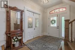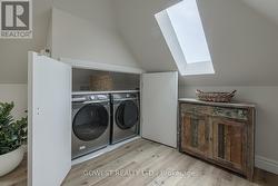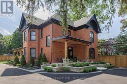 A truly one-of-a-kind, professionally restored home that blends timeless Victorian charm with modern luxury. This stunning residence features 10-ft ceilings on the main floor, pot lights throughout, and a custom-made kitchen with a high-end designer backsplash and a spacious walk-in pantry. Original details include elegant straw glass windows, many original glass-paneled doors (no locks), rounded wall edges, oak staircases, and beautifully preserved Victorian baseboards, crown moldings, and hinges. The living room features a classic wood-burning fireplace, while a striking gas fireplace connects the family room and dining room; perfect for both ambiance and warmth. Enjoy three expansive porches with cedar ceilings and pot lights, and a large separate garage with loft storage. The home boasts a floating staircase leading to the third floor, a skylight, coffered ceilings in the family room, and a third-floor teenager or nanny suite. All bathrooms include heated floors for year-round comfort, while the basement features in-floor heating, a quartz island bar, and a cozy entertainment space. Upgraded with 200 amp electrical service and a new water heater, this home offers over three full floors of living space plus a finished basement. Located just a 10-minute walk to downtown Oakville, this prestigious address offers character, warmth, and sophistication rarely found today. (id:27)