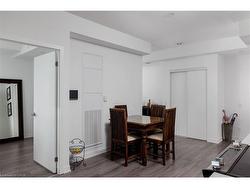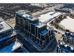 Experience luxury condo living at Distrikt Trailside in this stunning 2-bedroom plus den, 2-bath suite offering approx. 937 sq. ft. of bright, modern living space plus a private balcony with amazing East views! This upscale Oakville condo features a grand 2-storey lobby with a 24-hour concierge, a state-of-the-art fitness centre, a rooftop patio, fireside lounges, a billiards room, innovative mechanical and automation systems, ground floor lifestyle retail, and an on-site property management office. The suite showcases 9-foot smooth ceilings, wide-plank laminate flooring, designer tiles, quartz countertops, imported Italian cabinetry, Energy Star appliances, Decora switches, fibre-optic Internet, a digital wall pad for seamless interaction with home and community systems, and a weatherproof balcony electrical receptacle. The open-concept living area offers a wall of windows and a walkout to the balcony. A chef-inspired kitchen includes sleek cabinetry, quartz counters, tile backsplash, stainless steel and integrated appliances, and a spacious dining area. The primary bedroom features a walk-in closet and a spa-like 3-piece ensuite with Italian cabinetry, a quartz countertop, and an oversized glass shower. A second bedroom, 4-piece bathroom, in-suite laundry, one underground parking space and a storage locker add convenience. Ideally located in Oakville's sought-after Preserve community, you're steps to Fortino's, restaurants, services, North Park, the public library, and the Sixteen Mile Sports Complex, and just minutes to the Uptown Core, Oakville Trafalgar Hospital, and the 407 ETR-perfect for commuters and lifestyle seekers alike.