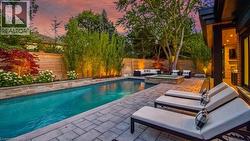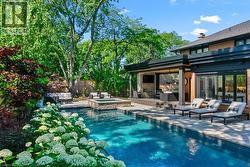 Welcome to beautiful 484 Aspen Forest Drive. This elegant 4+1 bedroom, 4 bathroom executive home has been meticulously updated top to bottom, and sits on a professionally landscaped lot in Oakville's prestigious Ford Eastlake neighborhood. The highlight of this home is the spectacular private backyard - your own slice of paradise featuring a saltwater pool alongside a covered lifetime deck with gas fireplace and outdoor TV, perfect for entertaining. The integrated hot tub, professional landscaping and inground irrigation, add the perfect finishing touch to this outdoor sanctuary. Step inside to discover a warm and inviting space, featuring an updated eat-in kitchen, that opens directly to your backyard paradise. Spacious dining and living areas, plus a main floor laundry room and walk-in access from the garage complete this level. Upstairs, the spacious primary bedroom suite includes a luxuriously renovated spa-like ensuite, three additional bedrooms and a beautifully updated main bathroom. The finished lower level adds incredible versatility with a sizable recreation room, 4 pc bath, and large bonus room - perfect as home office, fitness space, or fifth bedroom. Located in the coveted Ford Eastlake community, you'll enjoy proximity to top-ranked schools, beautiful parks and ravine trails, convenient transit connections, and access to Oakville's premium downtown shopping area. From the stunning backyard oasis to comprehensive interior updates on every level, this move-in ready gem delivers style, functionality, and prime location ready for you to make your own dreams come true and create lasting memories from day one. (id:27)