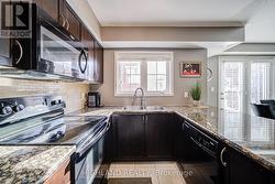 Absolutely Gorgeous 2-Bedroom Townhouse in Prime River Oaks, Oakville! close to 1,000 sq.ft plus balcony * located in the highly sought-after Waterlilies Complex of River Oaks. This family-oriented community is steps from parks, schools, trails, and all major amenities. The main floor features a bright, open-concept great room with upgraded hardwood floors, seamlessly connected to a large kitchen with granite countertops, a breakfast bar, and plenty of cabinetry. Walk out to your private balcony with a gas BBQ hookup perfect for entertaining. Upstairs, 2 spacious bedrooms with a convenient in-unit washer and dryer. This home also includes a large underground parking space plus a storage locker. Located close to Walmart, Superstore, restaurants, Oakville Hospital, and major highways. The townhouse is also next to the police station, offering exceptional safety and peace of mind (id:27)