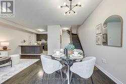 Absolutely Gorgeous 1,273 square foot Executive Freehold Townhome in Oakville's highly sought-after Westmount community, offering a perfect blend of style, comfort and unbeatable convenience. Enjoy a direct garage access from the spacious foyer.This beautifully upgraded 3-storey home features a premium stone and stucco exterior, open-concept main living level with 9' ceilings, rich dark hardwood floors, modern lighting, and a contemporary eat-in kitchen with breakfast bar, large countertops and stainless steel appliances, enhanced with a brand new range hood and stove (2025), all new faucets (2025), and LED lighting throughout (2025). The entire home has been freshly painted in 2026 and showcases new third-floor flooring (2025), creating a truly turnkey feel. Spacious living and dining areas walk out to a private balcony, ideal for relaxing or entertaining. The primary bedroom offers a walk-in closet, complemented by a generous second bedroom, upper-level laundry and a large bathroom. Located steps to parks, playgrounds, trails, community centre, hospital, shopping and everyday amenities, and just minutes to Bronte GO, Hwy 407, QEW and 403 for easy commuting. Situated in a family-friendly neighbourhood known for its highly ranked public and Catholic schools within the Westmount catchment, making it ideal for professionals, young families and investors alike. A move-in-ready home in one of Oakville's most convenient and well-connected communities. (id:27)