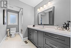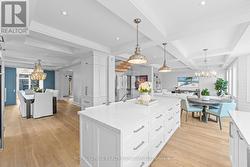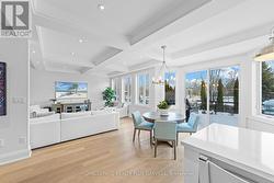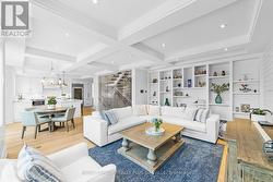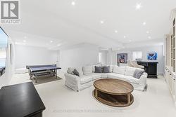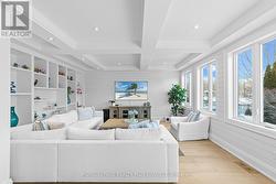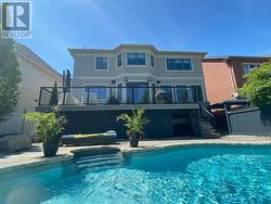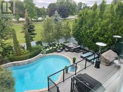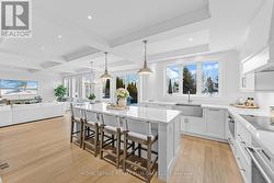 Professionally renovated top to bottom, this exceptional residence showcases refined craftsmanship, thoughtful design & timeless appeal. A dramatic foyer features a floating white oak staircase with glass surround, 9' ceilings, Bellevue brushed white hardwood flooring throughout main floor. Custom kitchen is a true showpiece with Cambria counters, ceramic backsplash, large island with seating, & a premium appliance package including Sub-Zero built-in fridge with freezer drawers, Wolf induction cooktop, built-in microwave & Asko dishwasher. An eat-in area and walkout to the backyard overlooking the pool, ideal for everyday living. Main floor offers a family room with coffered ceilings, shiplap accent walls & custom built-ins. A bright den with built-in desk and shelving & a functional mudroom with inside access to the double garage complete this level. Upstairs the spacious primary suite features a walk-in closet, spa-inspired 5-piece ensuite with double vanity, soaker tub & separate shower. Separate dressing room with center island & built-in organizers (formerly 4th bedroom) adds a boutique-style touch. Additional bedrooms include one with private ensuite, balcony & walk-in closet, plus another with walk-in closet & semi-ensuite. The finished basement includes high ceilings, new carpet, large recreation room with bar, games area, separate exercise room, lower-level laundry, & 2-piece powder room. Originally part of the Waterview Collection, this property backs onto greenspace with winter lake views. The exterior impresses with stone & stucco detailing, extensive hardscaping & outstanding curb appeal. The private, multi-level backyard features a stone patio, composite deck with gas BBQ line, irrigation system, professionally maintained inground saltwater pool with three wall fountains, newer liner, updated heater & salt cell, plus hot tub. Double garage doors replaced with parking for up to four cars. Walk to the lake, waterfront trail, beach & parks. (id:27)