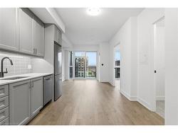 Welcome to #840 - 2343 Khalsa Gate, a stunning top-floor suite in the brand new Nuvo Condos by Crystal Homes and Fernbrook. This upscale community blends modern design, luxury amenities, and an unbeatable location.Situated on the top floor a $30,000 upgrade this suite offers enhanced privacy and unobstructed views. Floor-to-ceiling windows fill the space with natural light, while the walkout balcony overlooks peaceful green space. The open-concept layout showcases a beautiful kitchen with quartz counters, stainless steel appliances, and upgraded, carpet-free flooring throughout. The bathroom features a high-end upgraded bathtub and elegant finishes that add a touch of luxury to everyday living. Enjoy a vibrant community lifestyle with resort-style amenities including a rooftop pool and lounge area, state-of-the-art fitness centre, sauna, pet wash station, mini putt green, basketball courts, and concierge service. Perfectly situated near shopping, restaurants, and major highways, this location offers both convenience and connection. Whether you're a first-time buyer, commuter, or downsizer, this luxurious yet affordable home delivers the ideal Oakville lifestyle.