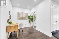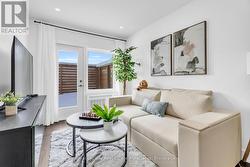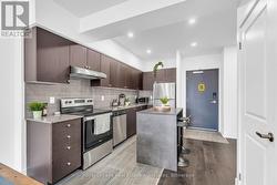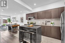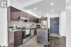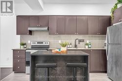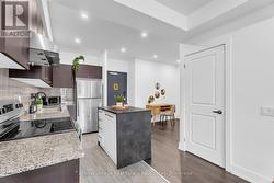 Set just moments from the heart of downtown Orangeville, this one bedroom plus den residence offers a thoughtfully composed balance of modern living and small-town ease. Positioned along Broadway Street and within easy walking distance to cafés, shops, restaurants, and everyday amenities, the home feels both connected and comfortably removed. Inside, the Madison model reveals a well-considered layout where light and proportion guide the experience from room to room. Large windows draw natural light deep into the living space, creating an atmosphere that feels open yet grounded. The flow is effortless, with a dedicated den offering flexibility for a home office, reading nook, or guest space, quietly set apart.The kitchen is clean-lined and contemporary, anchored by elegant porcelain tile flooring and a refined porcelain tile backsplash that bring both durability and understated sophistication. Designed for both function and calm, the space opens naturally to the living and dining areas, ideal for everyday living or effortless entertaining. From here, step outside to a rare and generous 220 square foot private walk-out patio-an extension of the living space that encourages morning coffee outdoors, evening unwinding, or simple moments of fresh air rarely found in condominium living.The bedroom is serene and well-proportioned, offering ample storage and a true sense of retreat at the end of the day. The modern four-piece bathroom is finished with porcelain tile flooring, echoing the home's cohesive design language. In-suite laundry and individually controlled heating and air conditioning in each room ensure comfort is both seamless and precisely tailored.Completing the offering are a private parking space, storage locker, and convenient visitor parking-details that quietly enhance daily life. This residence is ideal for first time homebuyers, downsizers or those seeking a refined, low-maintenance lifestyle just steps from the charm and vitality of downtown Orangeville. (id:7525)
