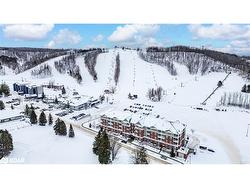 STYLISH & IMMACULATELY KEPT CONDO IN HORSESHOE VALLEY’S PREMIER FOUR-SEASON DESTINATION! This beautifully maintained Copeland model condo offers a lifestyle surrounded by nature, recreation, and endless opportunities for adventure. Residents are just steps from world-class resort facilities, including an 18-hole golf course, zipline and aerial adventure park, tennis courts, mini golf, spa, fitness centre, clubhouse, dining, indoor and outdoor pools, hot tubs, and saunas. Winter brings 29 alpine ski runs, 30 km of Nordic trails, snow tubing, and fat biking, while summer invites lift-access mountain biking, hiking, boating, and days on the fairways. The southeast-facing layout is bright and open, enhanced by thoughtful design elements and a cohesive modern aesthetic. The living room features a gas fireplace and a walkout to a balcony framed by peaceful treed views. The kitchen highlights espresso cabinetry, granite countertops, a tiled backsplash, and stainless steel appliances. A spacious primary suite features a double closet and private 3-piece ensuite with a granite-topped vanity, while the second bedroom enjoys a balcony walkout and nearby 4-piece bath, also with a granite-topped vanity. Complete with in-suite laundry, secure entry, elevator access, storage locker, and surface parking, with the option of underground parking available for an additional fee, this turn-key condo is ideal for weekend escapes, full-time resort living, or potentially generating income through Horseshoe Valley Resort’s rental program. This #HomeToStay offers the perfect opportunity to live, play, and unwind!